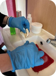 hygienische Arbeiten im Pflegealltag praktisch eingeübt. |