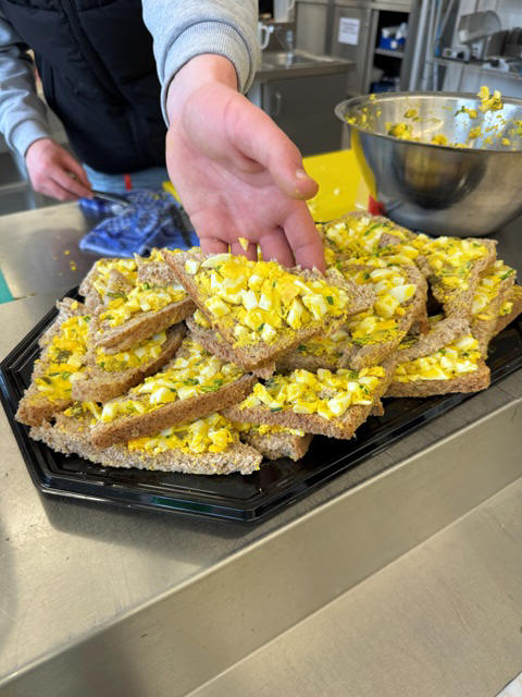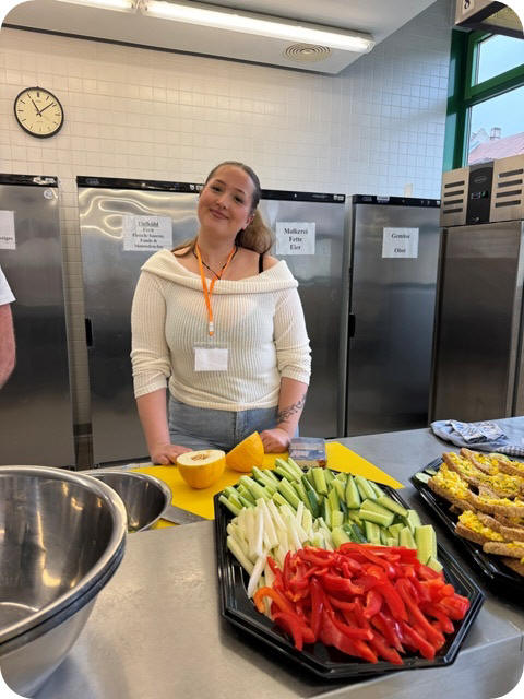 Probieren der selbst zubereiteten Snacks, die von Schülerinnen