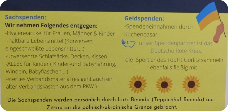 allen Spendern, dem "TopFit" in Görlitz und dem Teppichhaus